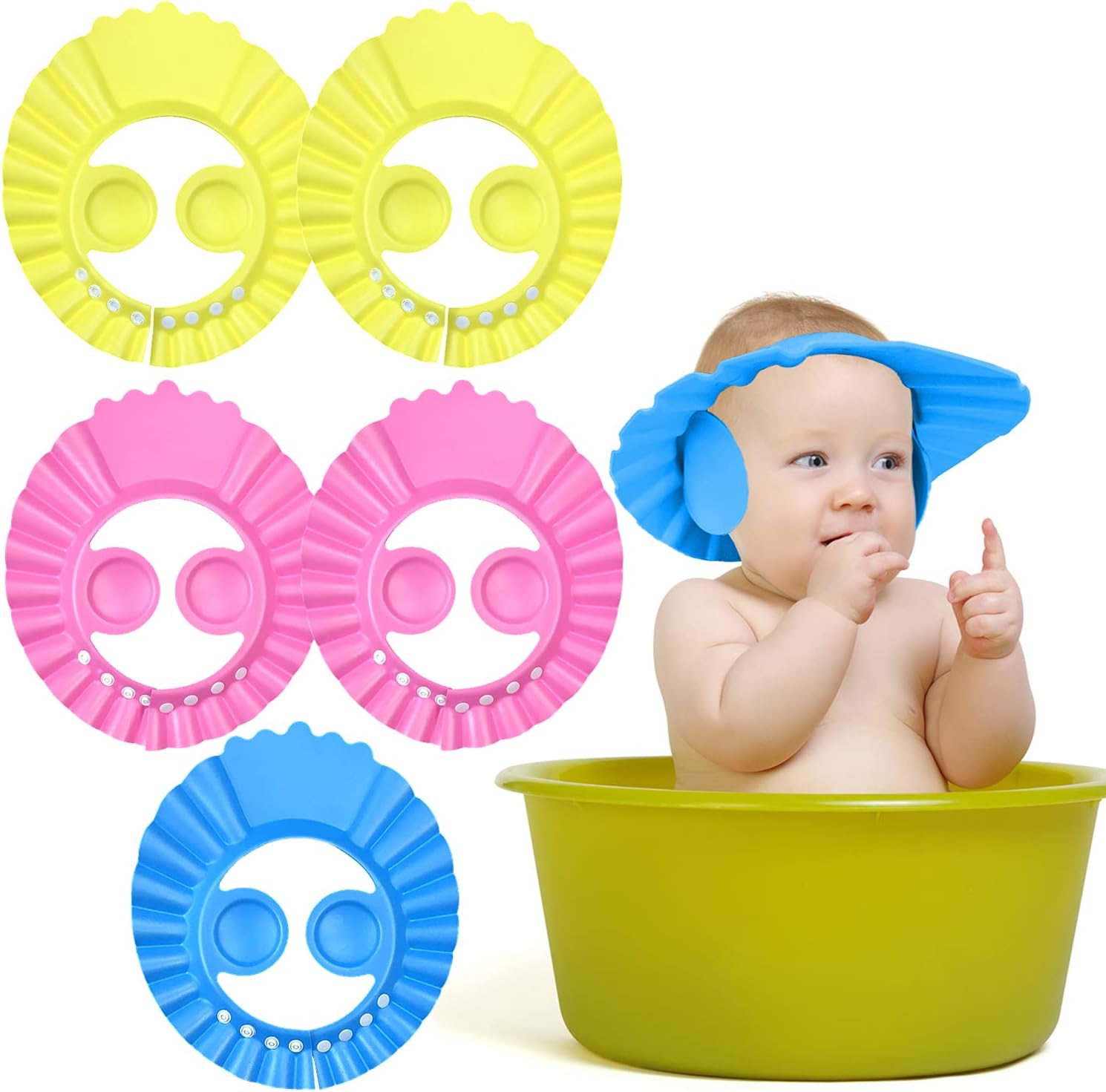 Pack of 3 – Baby Shower Cap with Ear Protector – Adjustable Bathing Hat for Kids – Random Colors